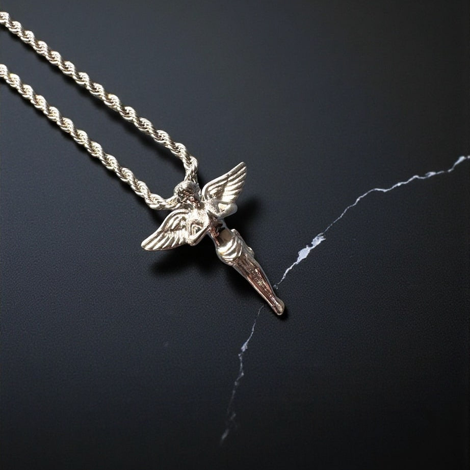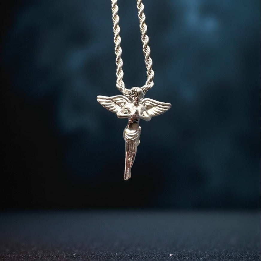 Strikingly detailed and eye-catching angel Silver Angel. Crafted with 316L stainless steel to guarantee durability through heat, sweat, and water for a lifetime without tarnishing. Pendant & Chain Included.