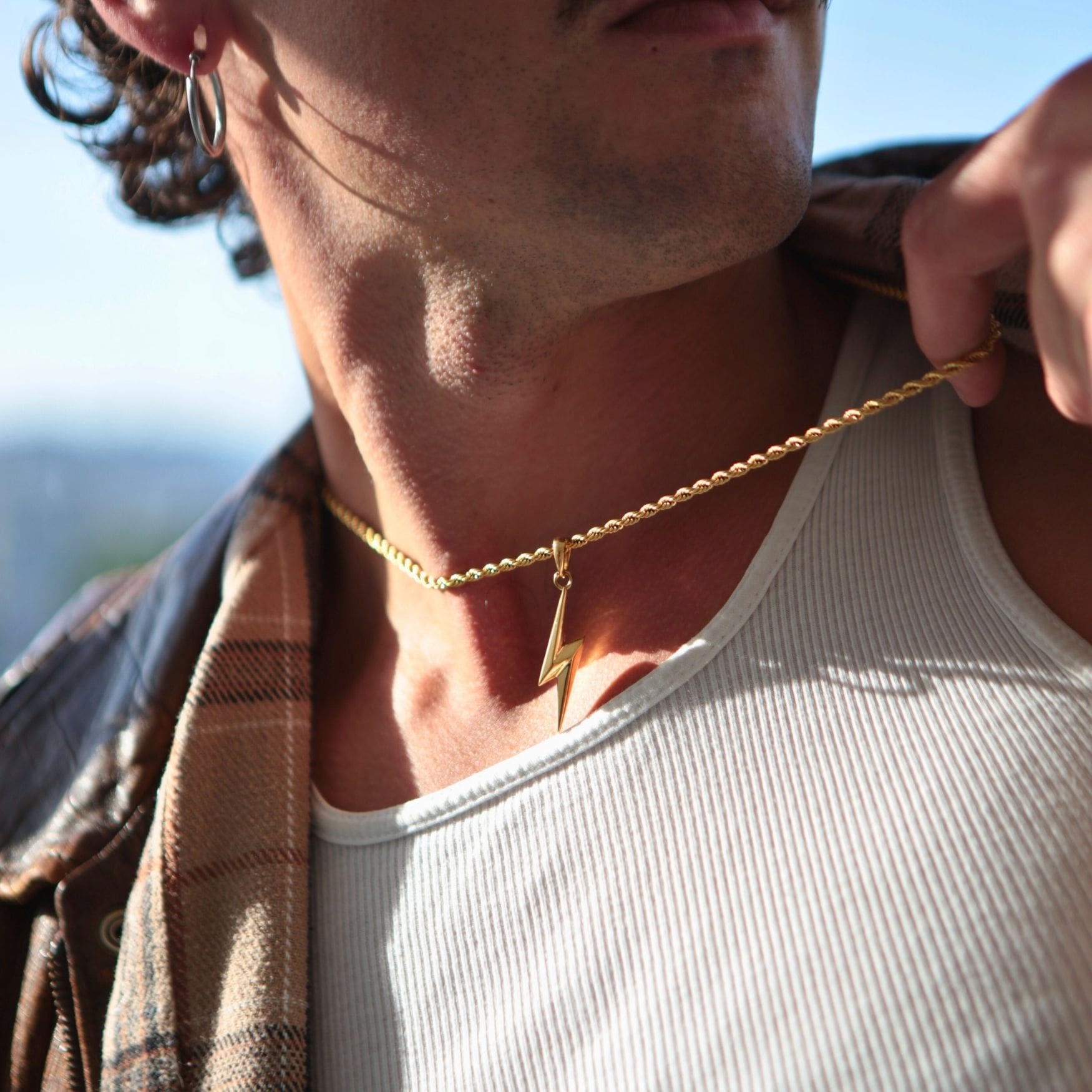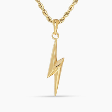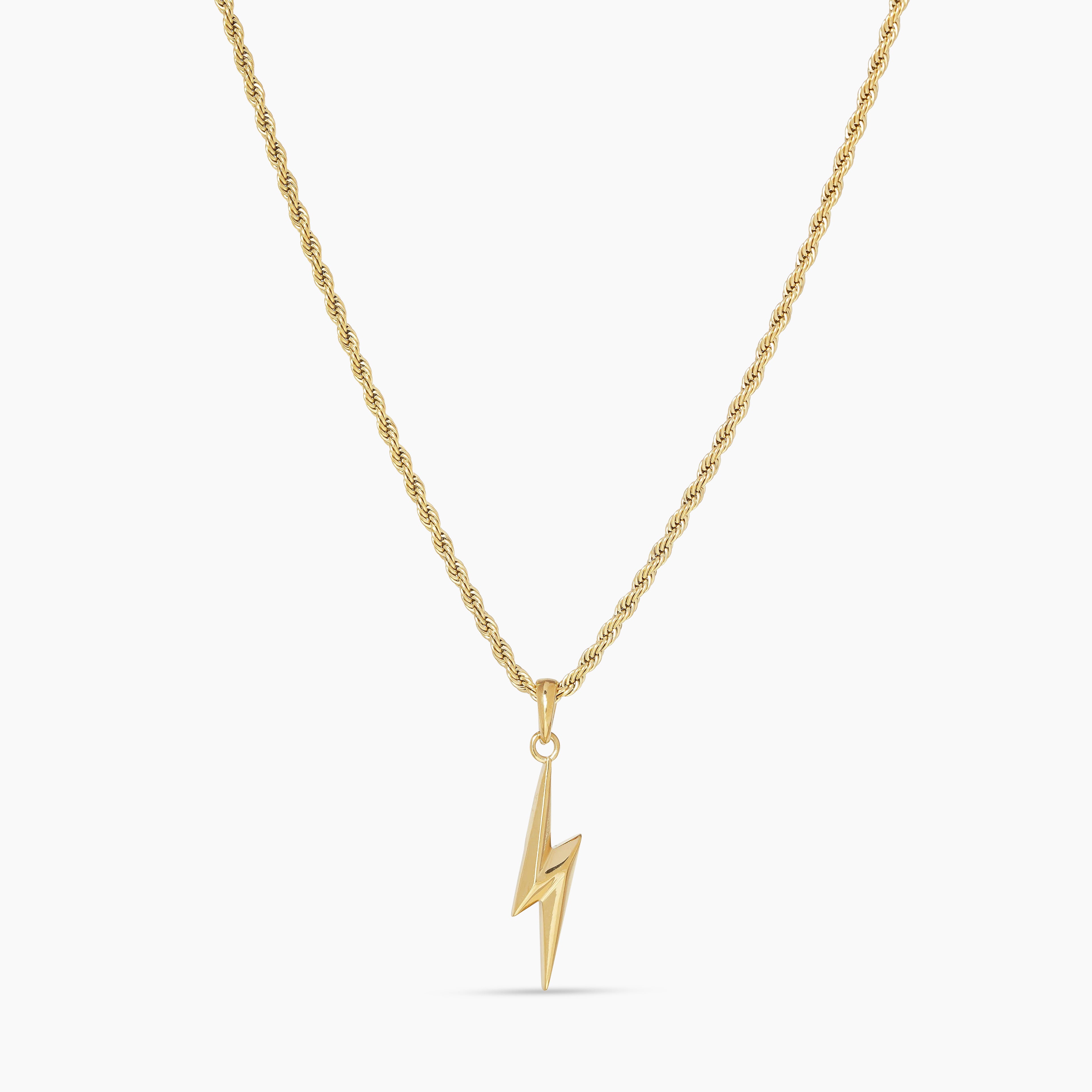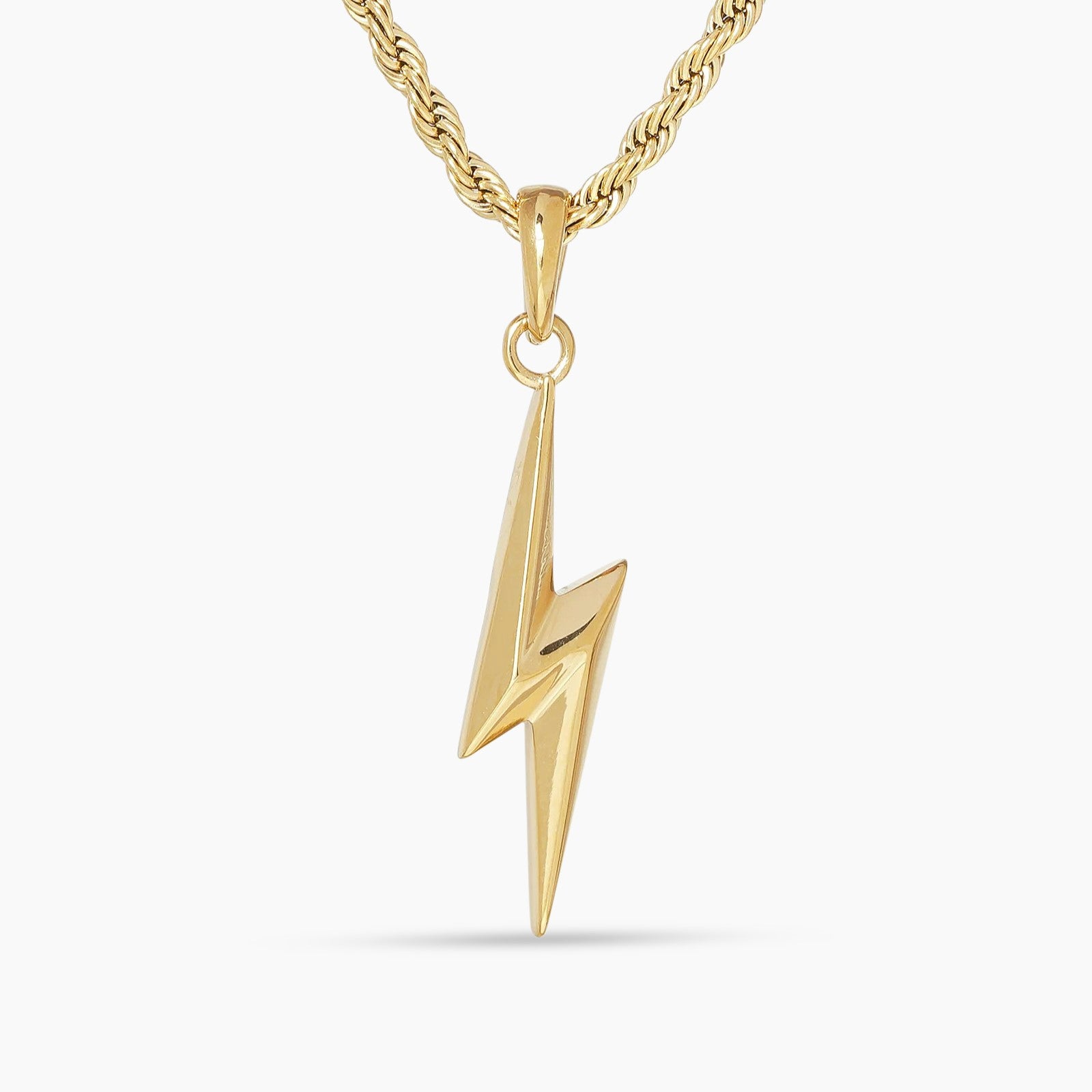 Gold lightning bolt necklace made of high-grade 316L Stainless Steel and finished off in 18K Gold. This necklace is guaranteed to be durable through heat, sweat, and water for a lifetime. Pendant & Chain Included.